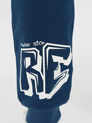 Брюки с притачным поясом и манжетами. Пояс из основного полотна и эластичной резинкой внутри. Низ брюк с притачными манжетами из полотна с добавлением лайкры. Задняя часть декорирована принтом "Реальный".