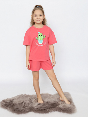 Пижама для девочки (футболка, шорты) светло-бирюзовая