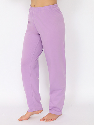 Комбинированная пижама из джемпера и брюк. Джемпер свободного покроя с длинным рукавом, набивной. Горловина обработана притачной бейкой из рибаны с лайкрой. Брюки прямые, умеренного объёма выполнены из гладкокрашеного полотна. Цельнокроенный пояс обработан плоским швом вподгибку с одновременным прокладыванием резинки.