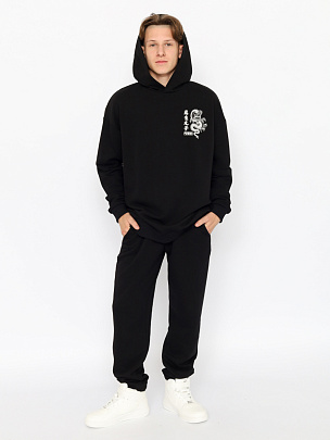 Молодежная толстовка oversize с капюшоном. Рукава длинные, с манжетами по низу. Нижние срезы переда и спинки оформлены притачным поясом. Манжеты и пояс выполнены из полотна с эластаном. Перед и спинка толстовки декорированы принтом (9 сыновей дракона).