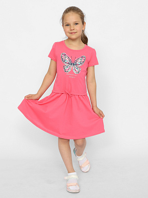 Сорочка свободного силуэта, элегантной длины чуть ниже икры. Спущенное плечо образует рукав "крылышко", по низу рукава настрочено эластичное кружево цвета в тон рисунка набивки. Круглая горловина обработана узкой бейкой и декорирована атласным бантиком в тон кружева. Из-под горловины по центру расположены несколько небольших складочек.