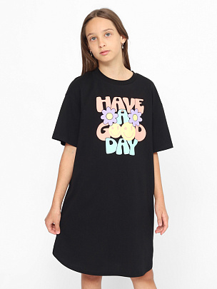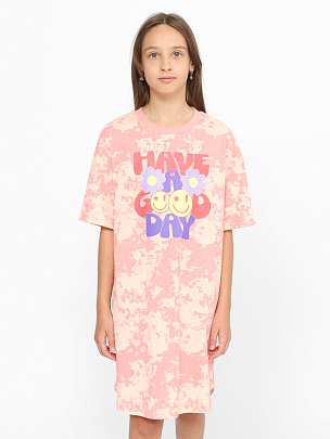Футболка с коротким рукавом. Горловина круглая, обработана узким воротником из полотна с эластаном. Перед оформлен ярким принтом.